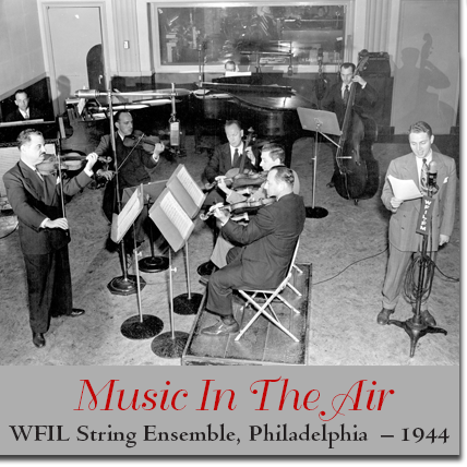 Music in the Air, features live broadcasts of Norman Black and the Norman Black WFIL String Ensemble.  Track I, (Courtesy of J. David Goldin of the radioGOLDINdex database), is a January 23, 1948, live broadcast.  Broadcast on Friday afternoons, Music in the Air, was a music education program that featured narrated stories about various composers and their works. In 1949, Music in the Air, was part of an music educational experiment utilizing radio broadcasts played into the classrooms of the Philadelphia School system. WFIL  Track II, (Courtesy of  Broadcast Pioneers of Philadelphia Archives), is a 1948 recording of the introduction of the last of three broadcasts of a show called, The Voice of Tomorrow.  The show was a regional competition to find the next great voices of tomorrow and boasted more than 850 contestants.